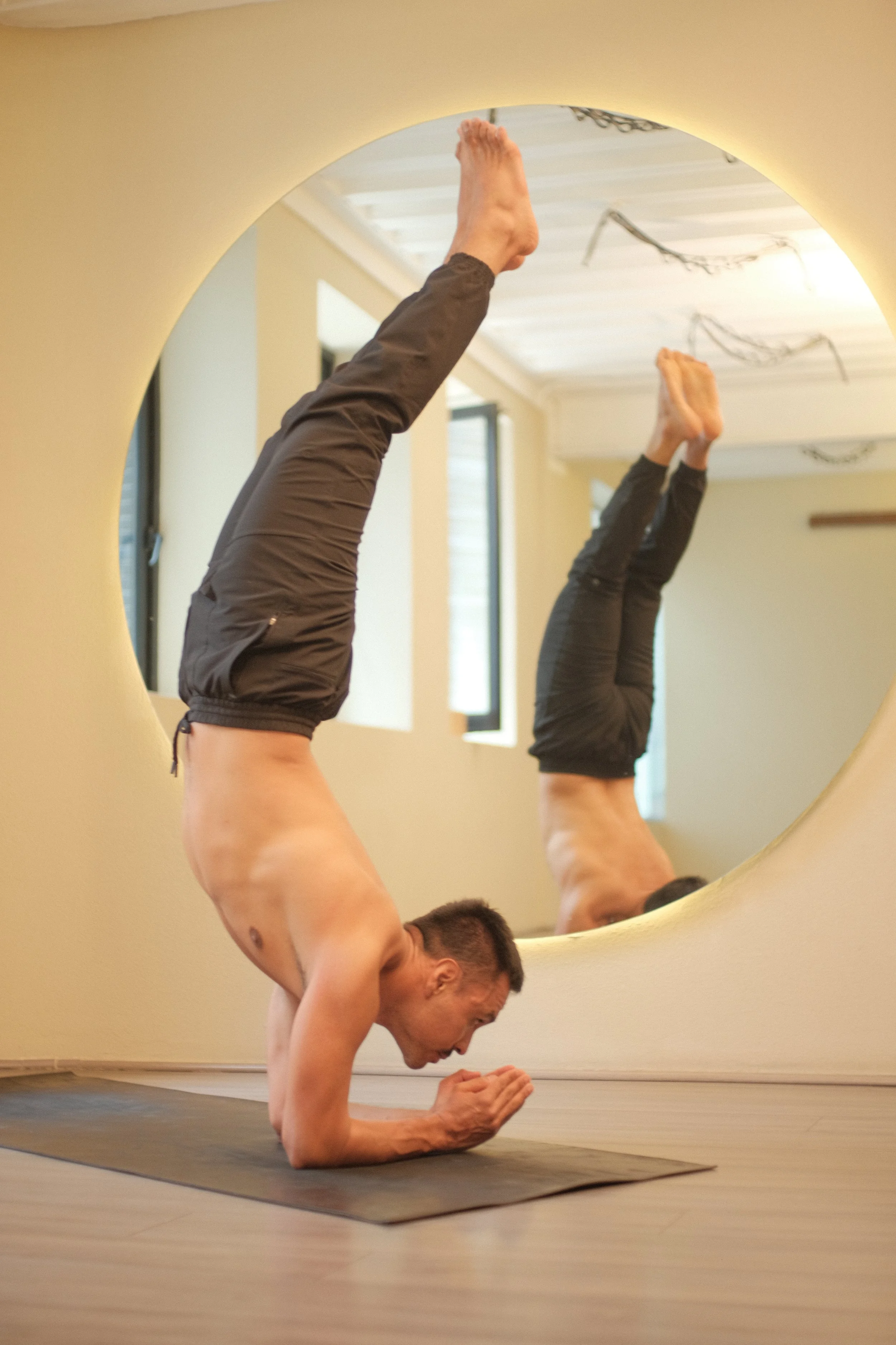 Trabajaremos entradas progresivas, salidas conscientes y práctica intencional de caídas, porque cuando aprendes a caer de forma segura, el miedo deja de paralizar y empieza a transformarse en confianza. A través de ejercicios específicos de propiocepción y comprensión biomecánica, aprenderás a sostener la inversión desde la estabilidad.